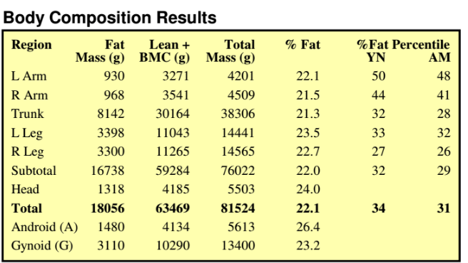 I kinda just floundered, I was still making progress but not exactly what I wanted. Eventually, I had the idea to book a DEXA scan, to get a more accurate look at how much fat I had and what I needed to do.